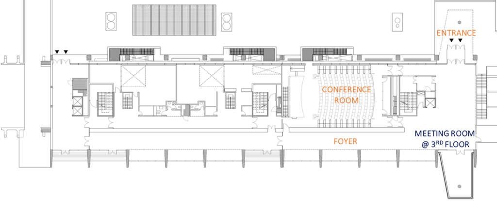 - a large Foyer, located nearby the Conference Room, where up to 200 people can gather, that will be used for coffee breaks and to organize poster sessions;